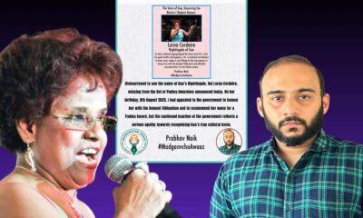 Margao: Madganvcho Awaaz and Youth Leader Prabhav Naik expressed deep disappointment over the continued neglect of Goa’s legendary singer Bai Lorna Cordeiro, whose name was once...