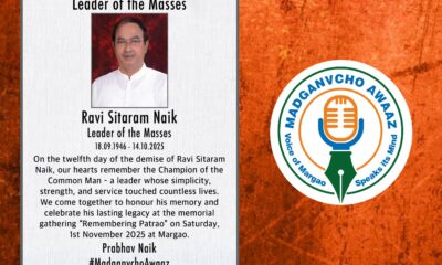 Margao: Madganvcho Awaaz and Youth Leader Prabhav Naik have announced a special memorial programme titled “Remembering Patrao” to pay tribute to the late Ravi Sitaram Naik,...
