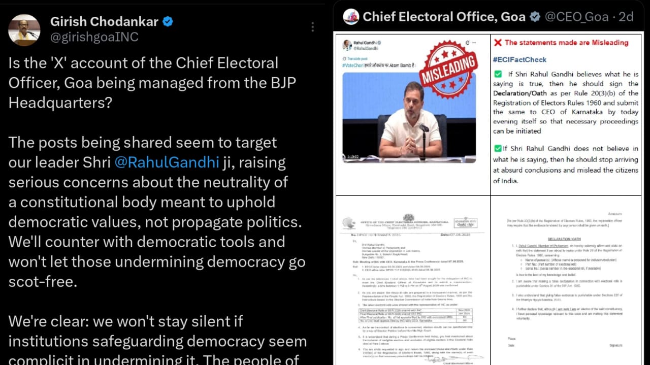 Chodankar questioned the Election Commission over the management of the CEO’s ‘X’ (formerly Twitter) and Facebook accounts, claiming that recent posts targeting Congress leader Rahul Gandhi amounted to a direct violation of neutrality and constitutional duty.